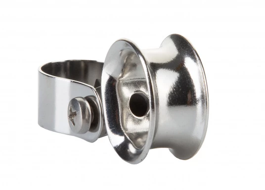 Filoir de chandelier pour faire courir des manoeuvres le long des filières (bosses d’enrouleurs, focs auto-vireurs, etc…) Acier inox V4A, pour tube de 25 mm. Diamètre de l’oeil : 20 mm