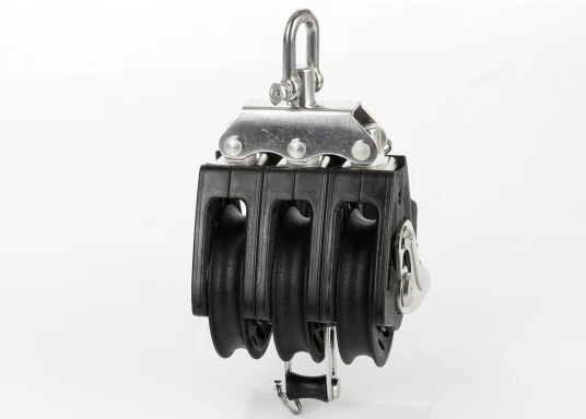 Poulie LEWMAR triple à émerillon et taquet coinceur.
