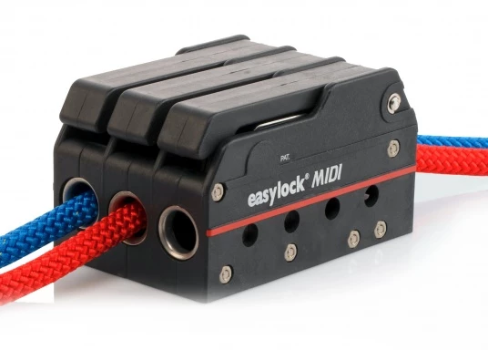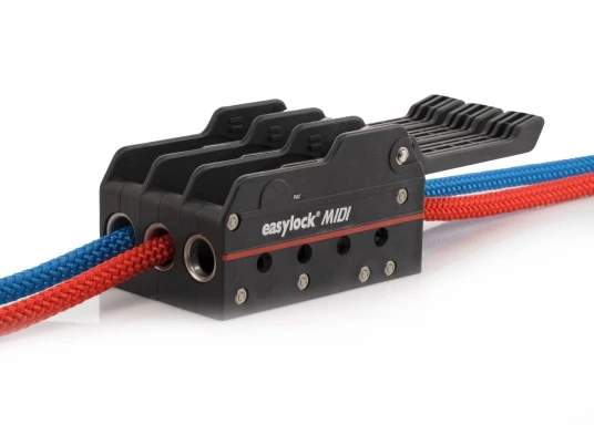 Le bloqueur easylock Midi fonctionne avec un mécanisme unique qui maintient le cordage sur toute la surface et qui permet de reprendre une manœuvre en position de blocage. Pour cordage de 6 à 12 mm et bateau jusqu’à 40 pieds. Charge de tavail : 700 kg.