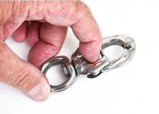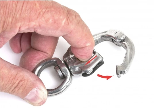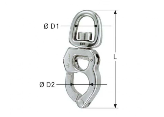 Mousqueton inox à largage rapide Wichard. Oeil sur émerillon. Ce mousqueton est une référence. Plusieurs dimensions sont disponibles.