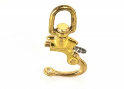 Mousqueton laiton à œil sur émerillon. Deux tailles.