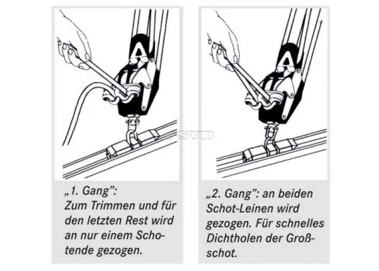 - rapports 3:1 et 6:1 pour bateaux jusqu’Ă 30 pieds et surface de GV de 25 m² environ