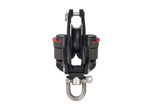 Les joues de ces poulies à friction sont en aluminium forgé anodisé et les réas en composite nylon renforcé de fibres de verre. Résistance extrême, notamment pour les charges statiques. La manille peut être verrouillée en deux positions différentes.