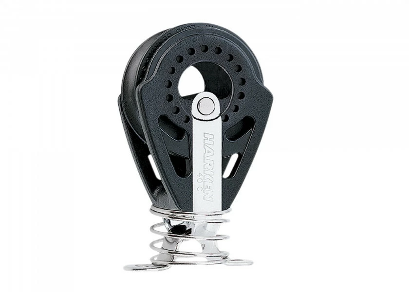 Poulie simple verticale HARKEN Carbo Block avec platine de fixation et ressort.