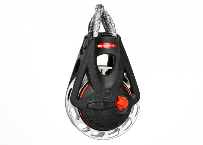 RONSTAN : les poulies à billes Ronstan Orbit Block sont très légères par rapport à leurs charges de travail. Le système de fixation par lashing Dyneema ® SK 75 est léger, pratique et efficace. Le loop, maintenu par un clips, reste solidaire de la poulie même en position ouvert. Un système unique de roulement réparti les charges et soulage le réa, réduisant les frictions